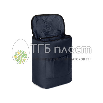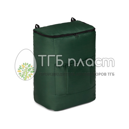 Гибкий термоконтейнер выполнен в виде мешка (сумки) из гибкой плотной ткани с утеплителем. Для удобства загрузки предусмотрена крышка на молнии. Обеспечивает хранение урожая при оптимальной температуре: 0…+7 °C.