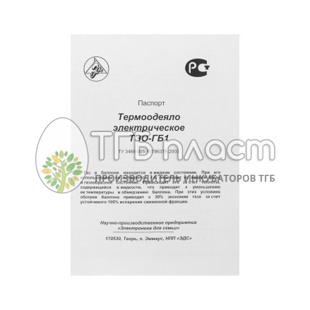 Изделие, размером с газовый баллон объёмом 50 литров, изготовленное из плотной прочной ткани (в несколько слоёв) с удобными застёжками на липучках и шнуровкой, оборудованное системой электроподогрева – это и есть термоодеяло ТЭО-ГБ1. Оно полностью покрывает баллон, обеспечивая его теплом в холодное время года. Для удобства эксплуатации одеяла в его комплект входит чехол.